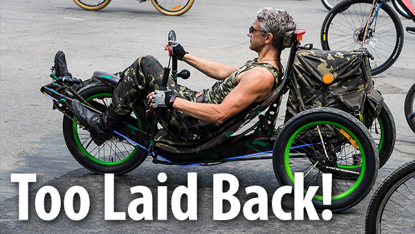 I once was driving along a country road and saw a shape in the distance that I could not readily identify. It was smaller than a person walking and seemed to be moving like a bicycle, but the shape was quite low to the ground. As I drew closer I saw that it was a rider on a recumbent bike.