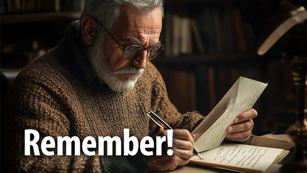 An even more daunting task is to type your own obituary. In what way do you want to be remembered? Has your light burned so bright that it provided light to those who walk in darkness? Do you live so consistently for the Lord that people will remember you as one who walked close to God? Now is the time to take stock of the things that really matter in life and will count for eternity. REMEMBER!